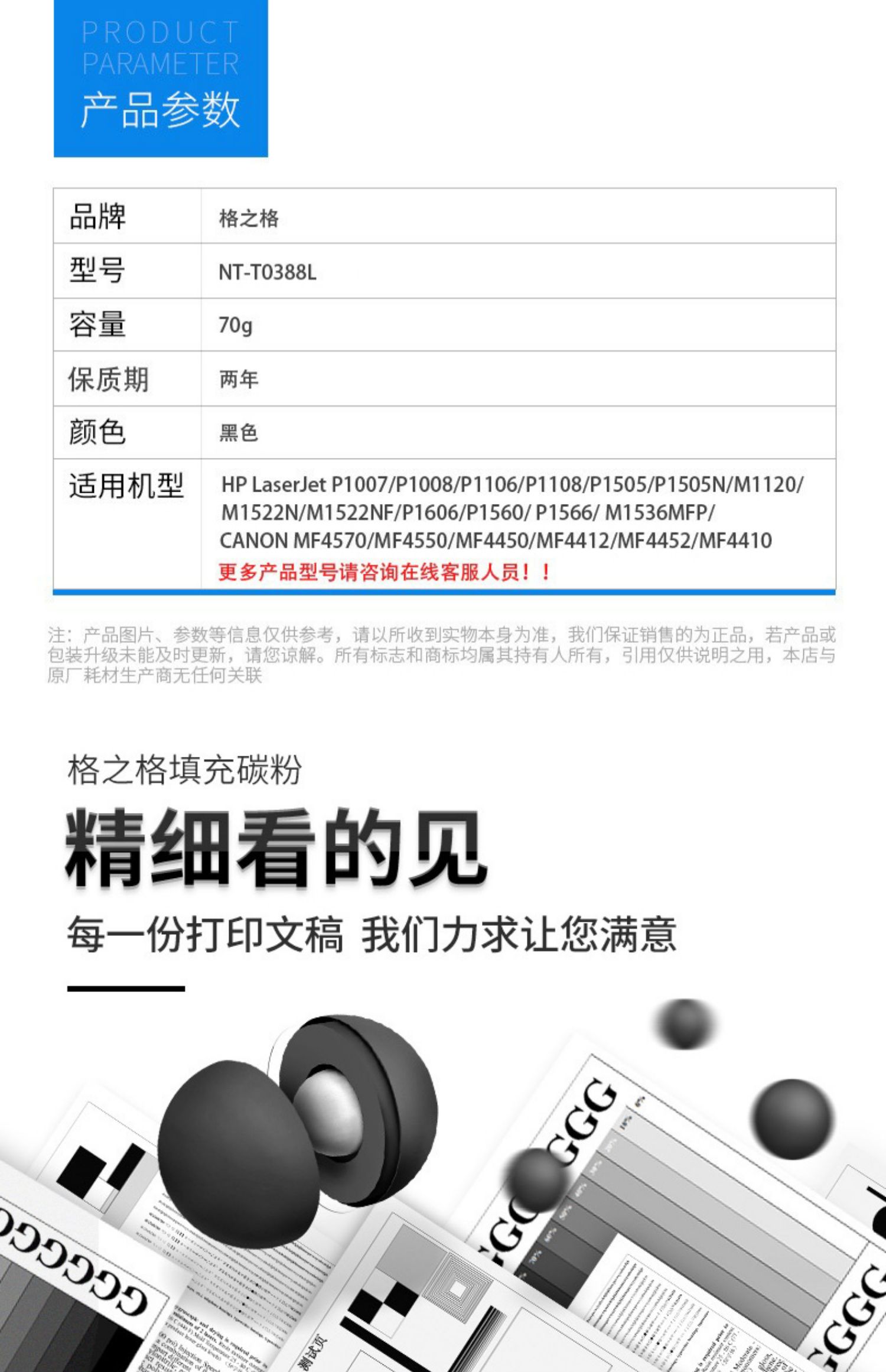 適用機(jī)型  :   388a碳粉適用HP p1007 p1008 p1106 p1108 m1136 m1536 1213 m1216打印機(jī)墨粉78a 88A crg328硒鼓碳粉